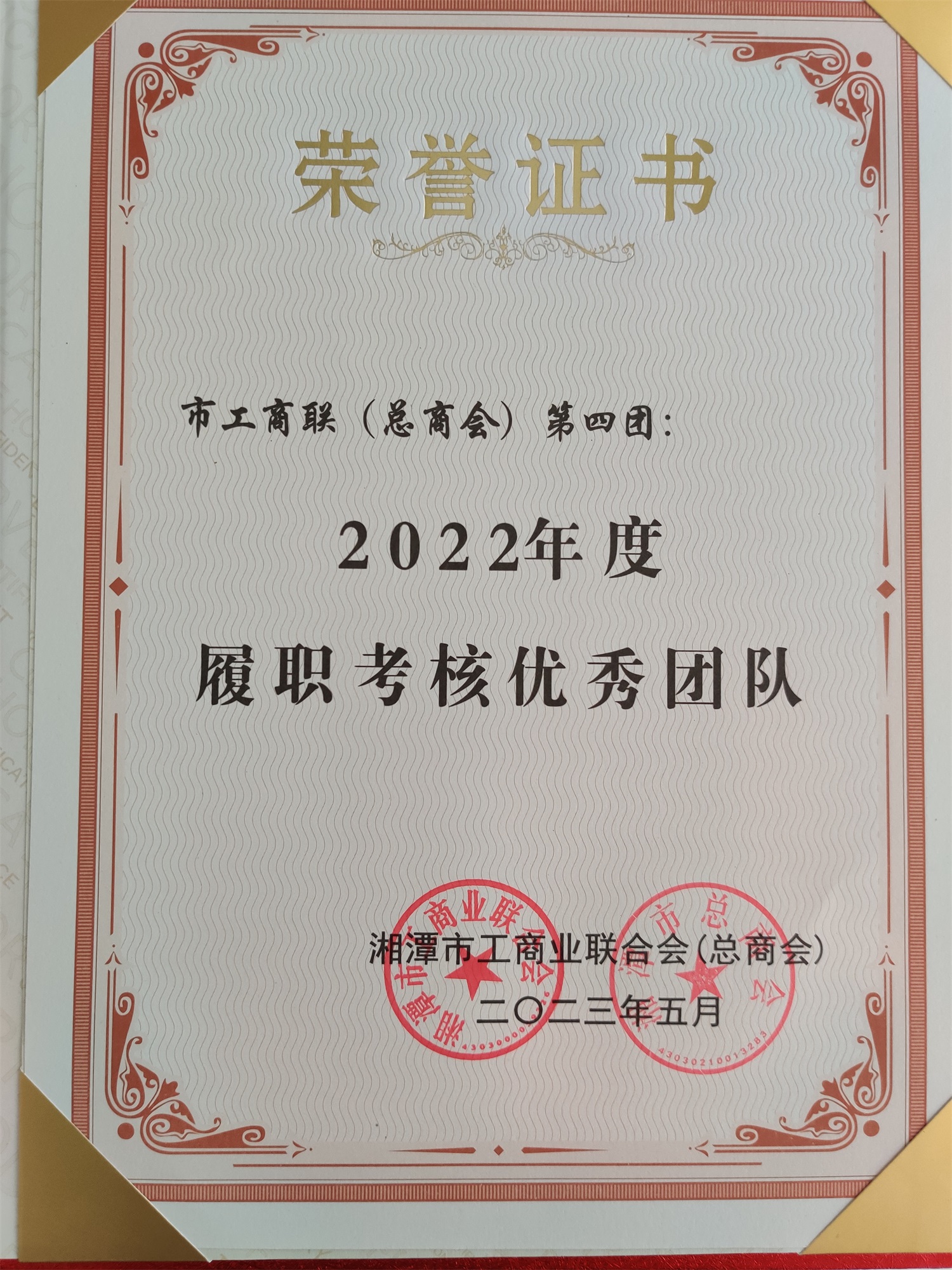 肖朝暉董事長榮獲2022年度履職考核優(yōu)秀企業(yè)家副主席。肖朝暉董事長擔(dān)任團(tuán)長的市工商聯(lián)第四團(tuán)榮獲2022年度履職考核優(yōu)秀團(tuán)隊(duì)。